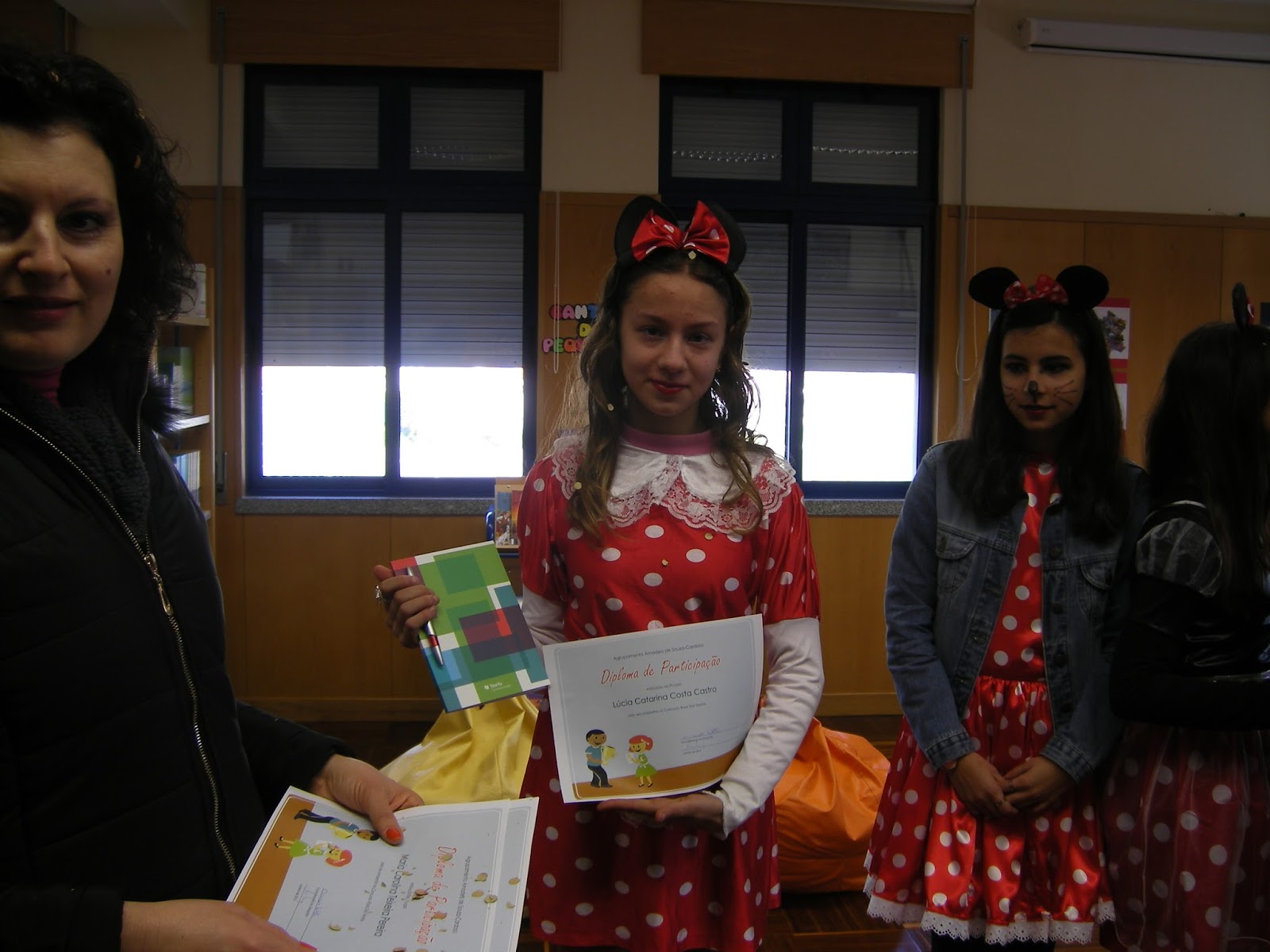 escola Amadeo. As meninas foram com vestido de plástico, enfeitado com bolinhas